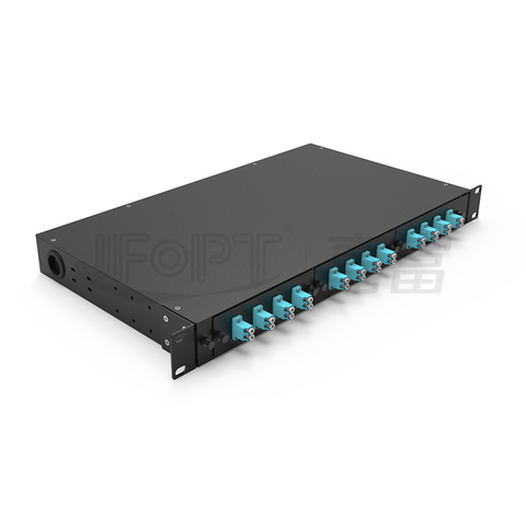 Bảng điều khiển sợi mật độ cao 1U 96 lõi Giá đỡ 19 inch với băng cassette 4X MPO/MTP 40g/100g thiết bị sợi trung tâm dữ liệu