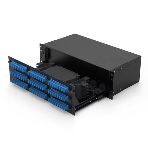 144 cổng FC sợi Patch Panel cho viễn thông/Trung tâm dữ liệu Modular ODF Chassis PoE tương thích SM g657a1 OM3/OM4 uốn cong không nhạy cảm
